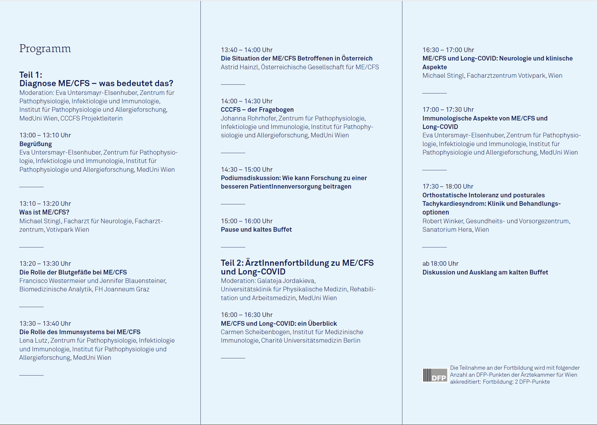 Die Deutsche Gesellschaft für ME/CFS und die Österreichische Gesellschaft für ME/CFS haben die Veranstaltung organisatorisch begleitet.